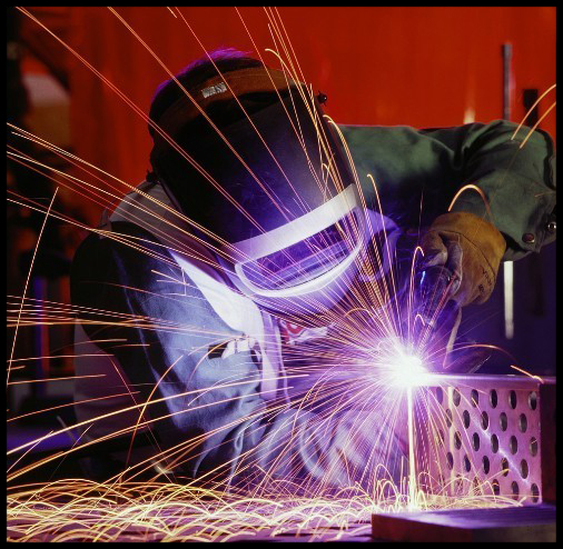 | 電弧焊: 焊接材料為焊條,多用于鋼材與鋼材間的焊接。 焊條由焊條芯和藥皮組成。焊接時(shí),在電弧高溫作用下,藥皮首先熔融。組成藥皮的穩(wěn)弧劑(Ca及K、Na等電離電位低的物質(zhì))、還原劑(Mn、Ti、Al、Si等,可使進(jìn)入熔池的氧化物還原,S、P被去除)、造渣劑及造氣劑、合金劑、膠粘劑、稀渣劑、增塑劑等,大量變?yōu)楹附訜焿m,其粒徑在0.10~1.25μm。焊接煙塵中毒害最大的物質(zhì)是MnO2(約在焊接煙塵中占7.5%左右)及Fe2O3(約在焊接煙塵中占近50%)、SiO2(約在焊接煙塵中占近20%)等,會(huì)導(dǎo)致焊工錳中毒及矽肺病。有害氣體有CO、NOx等,而F會(huì)與H反應(yīng)生成有害氣體HF。