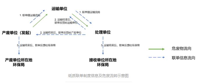 隨著我國(guó)工業(yè)化和城市經(jīng)濟(jì)的高速發(fā)展,工業(yè)廢物、生活廢物以及醫(yī)療廢物的產(chǎn)生量急劇增加,其中對(duì)人體健康、土壤、水體等危害更大的危險(xiǎn)廢物也大大增加,整個(gè)2018年的危廢產(chǎn)量達(dá)到7500萬(wàn)噸,與2011年相比翻了一番。如果危險(xiǎn)廢物處理不當(dāng),則會(huì)對(duì)環(huán)境以及人類造成巨大危害,甚至導(dǎo)致疾病和死亡。如何能更加有效、環(huán)保、徹底處理或穩(wěn)定化這些危險(xiǎn)廢物,成為當(dāng)今世界關(guān)注的重大問(wèn)題。 在過(guò)去的一年里,生態(tài)環(huán)境部新增了包括固體廢物與化學(xué)品司,危險(xiǎn)廢物也在固體廢物與化學(xué)品司管理范圍內(nèi)。緊隨其后的是“清廢行動(dòng)2018”轟轟烈烈拉開(kāi)架勢(shì),加強(qiáng)了對(duì)固廢以及危廢產(chǎn)生企業(yè)的監(jiān)管和督查,大量被查出來(lái)的固廢危廢將進(jìn)入正規(guī)處置渠道。在長(zhǎng)江經(jīng)濟(jì)帶沿岸地區(qū),工信部也對(duì)工業(yè)固廢展開(kāi)大排查。同時(shí),新版《環(huán)境保護(hù)稅法》頒布,山東、四川、廣東等省危廢相關(guān)細(xì)則紛紛落地,對(duì)于違反相關(guān)法律的行為也都遵從“從重處罰”的原則。 目前傳統(tǒng)的對(duì)危險(xiǎn)廢物轉(zhuǎn)移過(guò)程的監(jiān)管主要實(shí)行的是“紙質(zhì)聯(lián)單制度”,即轉(zhuǎn)移過(guò)程中的關(guān)鍵信息和數(shù)據(jù)由參與方記錄在聯(lián)單上,最后寄給相關(guān)的政府環(huán)保部門進(jìn)行監(jiān)管(如下圖所示)。此種制度存在流轉(zhuǎn)效率低,數(shù)據(jù)準(zhǔn)確性不可控,聯(lián)單的保存與管理成本高等問(wèn)題。