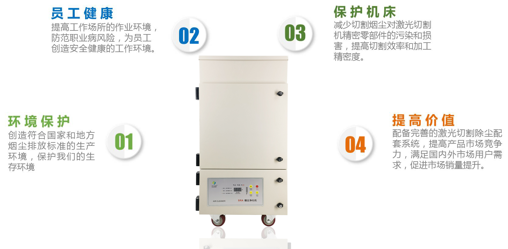 近年來,激光技術(shù)在金屬板材切割領(lǐng)域得到廣泛應(yīng)用,國產(chǎn)數(shù)控激光切割機(jī)產(chǎn)業(yè)發(fā)展迅速 。激光切割是利用高密度能量的激光照射使材料受熱熔化(蒸發(fā))而切割的方法。激光切割機(jī)在切割工件時(shí),輔助氣體與激光束同軸噴射,切割過程產(chǎn)生大量煙塵。 金屬材料激光切割時(shí),釋放出煙塵顆粒大小可分為塵埃(顆粒大小超過1μm)、氣溶膠(顆粒小于1μm,氣溶膠是一種含有細(xì)微分布的固體或液體氣體)及氣體,其中97%的顆粒直徑小于5.7μm。這些煙塵是顆粒極細(xì)小的混合物塵埃或氣溶膠,一般只有幾微米,會(huì)刺激人的眼睛及呼吸系統(tǒng),引發(fā)咳嗽、眼睛刺激等生理性的刺激反應(yīng)。通常認(rèn)為空氣動(dòng)力學(xué)粒徑小于7μm的顆粒物是可以進(jìn)入肺部深層并永久住留肺部,從而可能引發(fā)塵肺等慢性肺部疾病。 如果激光切割設(shè)備沒有除塵裝置或除塵效果不好,切割煙塵不僅污染精密部件切割頭,影響其壽命和穩(wěn)定性,而且嚴(yán)重污染工作環(huán)境,危害工作人員的身體健康。因此激光切割除塵治理顯得尤為重要,那么激光切割除塵治理的意義有哪些呢? 1、環(huán)境保護(hù) 創(chuàng)造符合國家和地方煙塵排放標(biāo)準(zhǔn)的生產(chǎn)環(huán)境,保護(hù)我們的生存環(huán)境 2、員工健康 提高工作場所的作業(yè)環(huán)境,防范職業(yè)病風(fēng)險(xiǎn),為員工創(chuàng)造安全健康的工作環(huán)境。 3、保護(hù)機(jī)床 減少切割煙塵對(duì)激光切割機(jī)精密零部件的污染和損害,提高切割效率和加工精密度。 4、提升價(jià)值 配備完善的激光切割除塵配套系統(tǒng),提高產(chǎn)品市場競爭力,滿足國內(nèi)外市場用戶需求,促進(jìn)市場銷量提升。