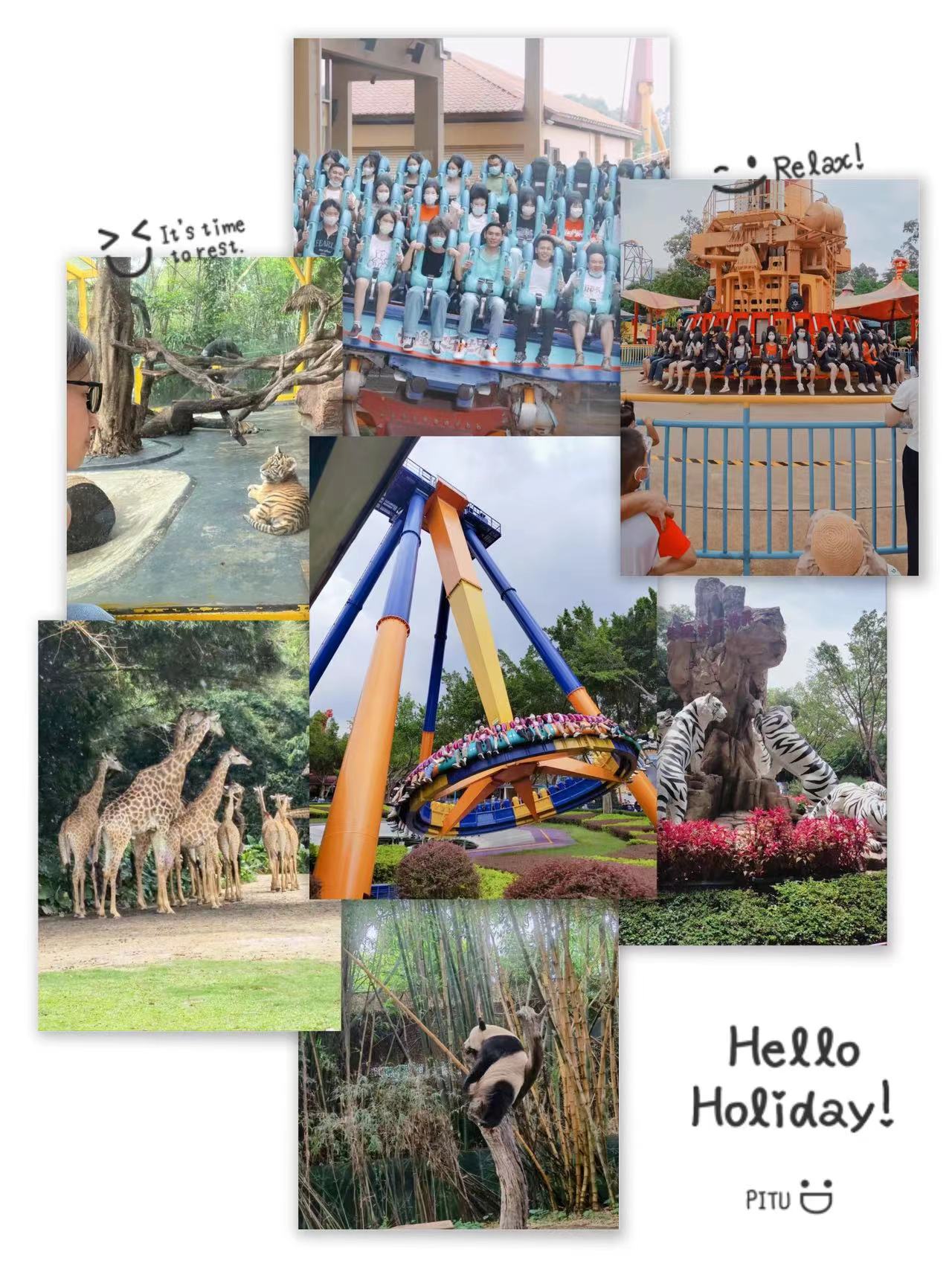 雖然天氣炎熱,但是絲毫擋不住人的熱情。在長隆歡樂世界六大主題區(qū):叢林探險、律動天地、歡樂嘉年華、星夢奇園、感動空間、尖叫地帶、兩大演藝廣場+劇場表演區(qū)域,隨處可見人盡情體驗項目的身影,下午出發(fā)長隆野生動物園,和動物近距離接觸,感受大自然的無限奧妙及魅力,大家三五成群地結(jié)伴而行,激情洋溢,喜出望外,體驗過程中不忘留影打卡,記錄旅行中的點點滴滴。